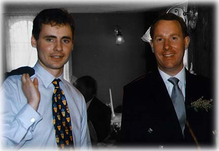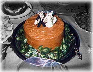 The pictures below show my bachelor's cake (an American tradition that hasn't made it across the Atlantic yet) and also a surprise guest at the wedding. My friend John, who now lives in Moscow, turned up unexpectedly on the morning of the wedding. He had a business trip to Dallas the following Monday and came early to gatecrash the event (without telling me though my best man had been warned !).